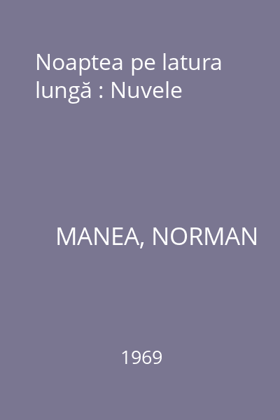| Titlu | Noaptea pe latura lungă : Nuvele |