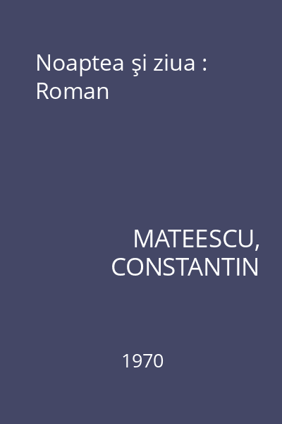 | Titlu | Noaptea şi ziua : Roman |