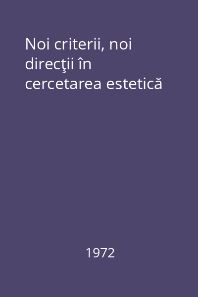 | Titlu | Noi criterii, noi direcţii în cercetarea estetică |