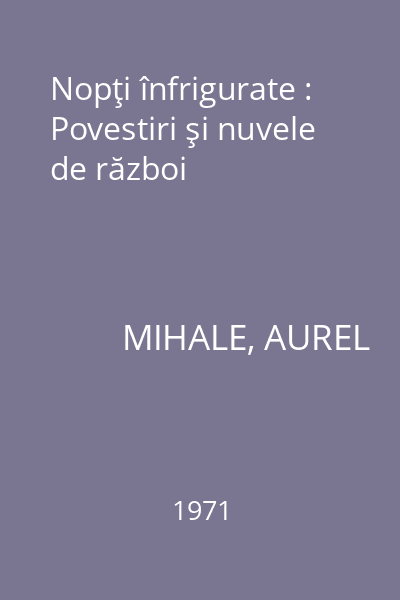 | Titlu | Nopţi înfrigurate : Povestiri şi nuvele de război |