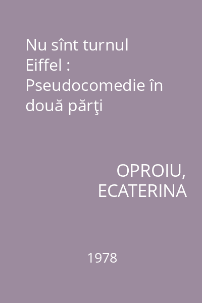 | Titlu | Nu sînt turnul Eiffel : Pseudocomedie în două părţi |