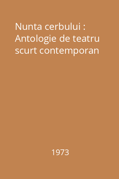 | Titlu | Nunta cerbului : Antologie de teatru scurt contemporan |