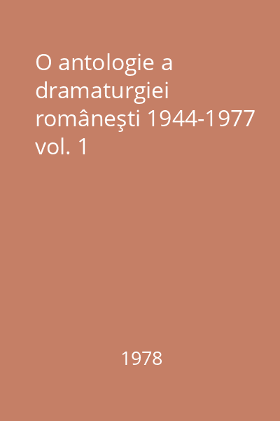 | Titlu | O antologie a dramaturgiei româneşti 1944-1977 vol. 1 |