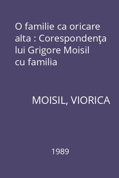 | Titlu | O familie ca oricare alta : Corespondenţa lui Grigore Moisil cu familia |