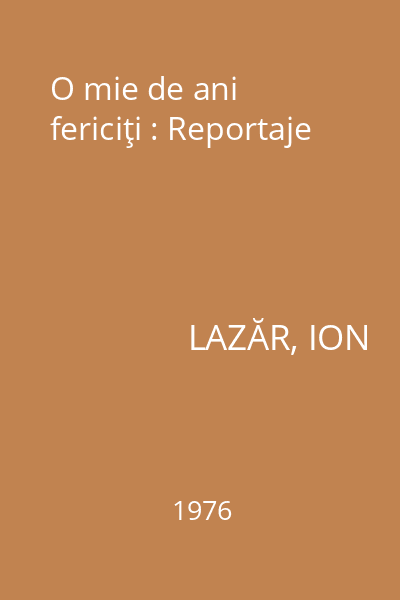 | Titlu | O mie de ani fericiţi : Reportaje |
