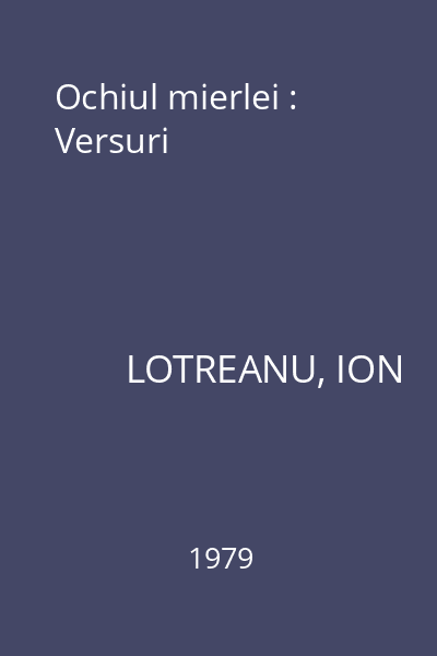 | Titlu | Ochiul mierlei : Versuri |
