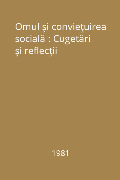 | Titlu | Omul şi convieţuirea socială : Cugetări şi reflecţii |