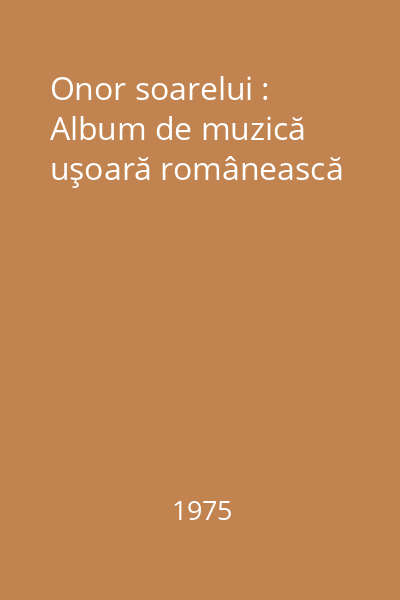 | Titlu | Onor soarelui : Album de muzică uşoară românească |