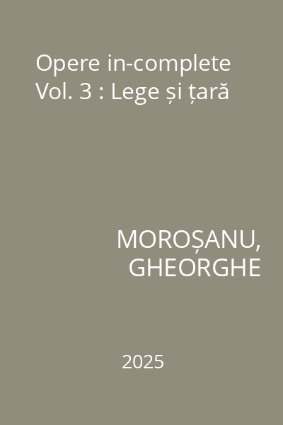 | Titlu | Opere in-complete Vol. 3 : Lege și țară |