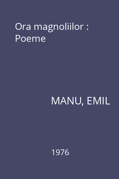 | Titlu | Ora magnoliilor : Poeme |