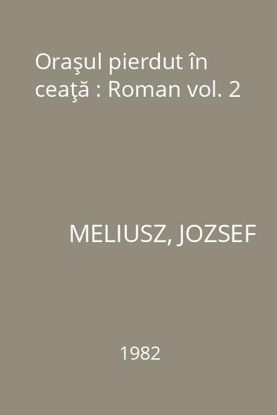 | Titlu | Oraşul pierdut în ceaţă : Roman vol. 2 |