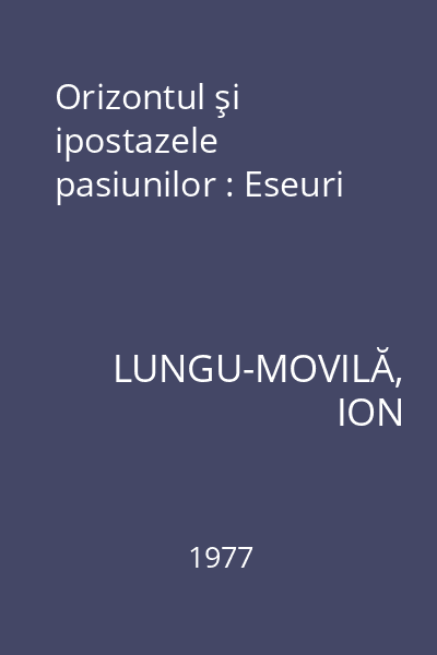 | Titlu | Orizontul şi ipostazele pasiunilor : Eseuri |
