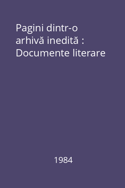 | Titlu | Pagini dintr-o arhivă inedită : Documente literare |