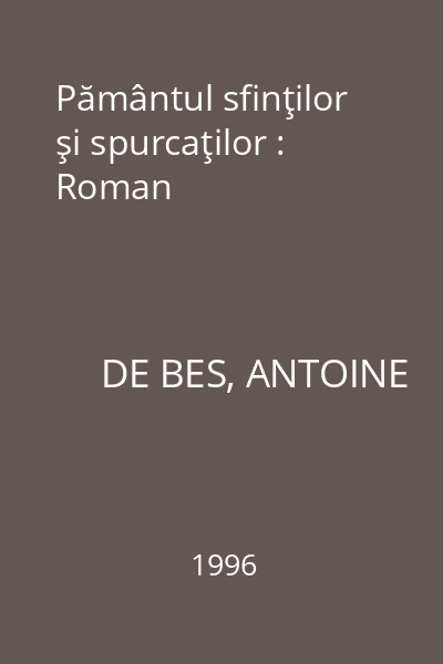 | Titlu | Pământul sfinţilor şi spurcaţilor : Roman |