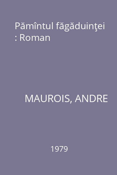 | Titlu | Pămîntul făgăduinţei : Roman |