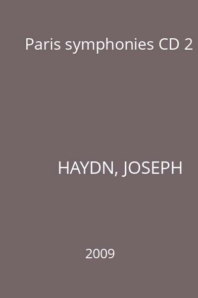| Abstract/Sumar | Symphony In B Flat Major, Hob.I: 85 «La Reine» = "The Queen" Orchestra – New York Philharmonic 2-1I. Adagio – Vivace8:31 2-2II. Romance. Allegretto5:14 2-3III. Menuet. Allegretto – Trio4:36 2-4IV. Finale. Presto3:13 Symphony In D Major, Hob.I: 86 Orchestra – New York Philharmonic 2-5I. Adagio – Allegro Spiritoso8:20 2-6II. Capriccio. Largo8:33 2-7III. Menuet. Allegretto – Trio6:20 2-8IV. Finale. Allegro Con Spirito5:52 Symphony In A Major, Hob.I: 87 Orchestra – New York Philharmonic 2-9I. Vivace6:56 2-10II. Adagio8:08 2-11III. Menuet – Trio5:07 2-12IV. Finale. Vivace |
