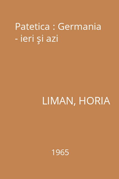 | Titlu | Patetica : Germania - ieri şi azi |