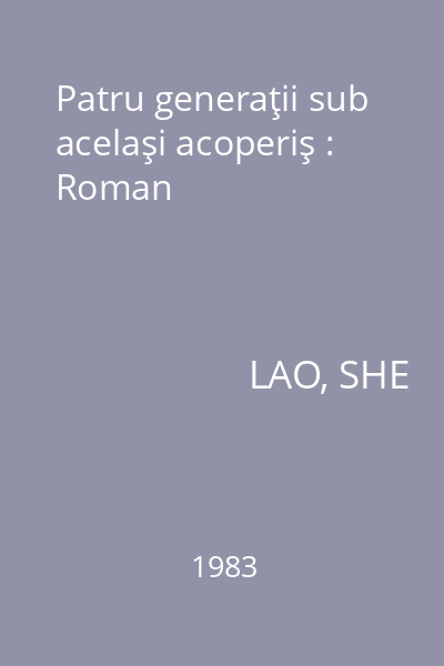 | Titlu | Patru generaţii sub acelaşi acoperiş : Roman |