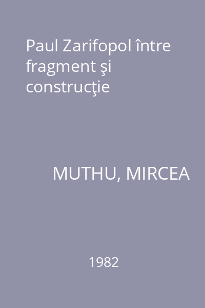 | Titlu | Paul Zarifopol între fragment şi construcţie |