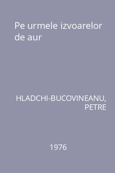 | Titlu | Pe urmele izvoarelor de aur |