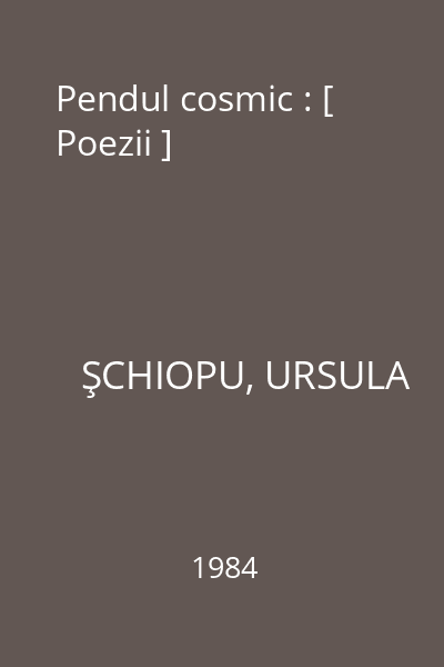 | Titlu | Pendul cosmic : [ Poezii ] |