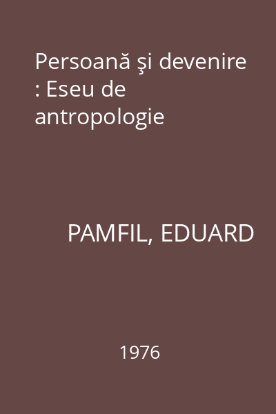 | Titlu | Persoană şi devenire : Eseu de antropologie |