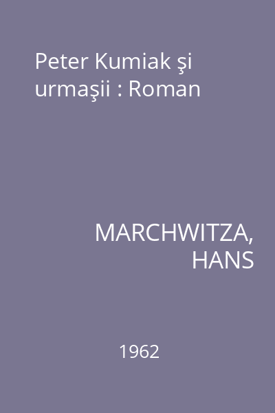 | Titlu | Peter Kumiak şi urmaşii : Roman |