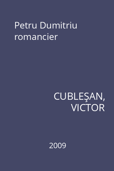| Titlu | Petru Dumitriu romancier |