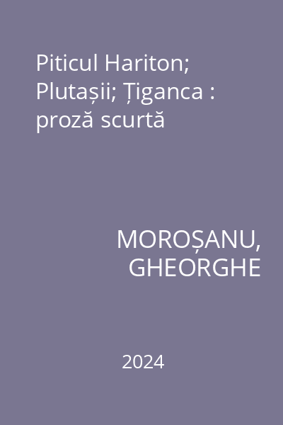 | Titlu | Piticul Hariton; Plutașii; Țiganca : proză scurtă |