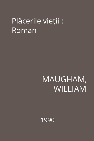 | Titlu | Plăcerile vieţii : Roman |