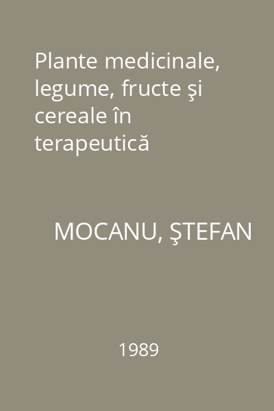 | Titlu | Plante medicinale, legume, fructe şi cereale în terapeutică |