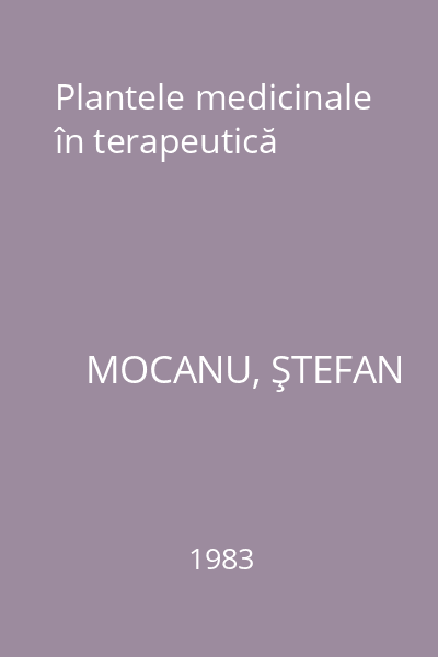 | Titlu | Plantele medicinale în terapeutică |