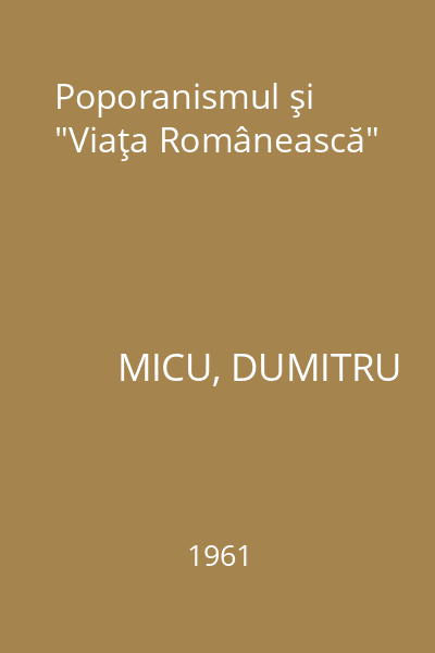 | Titlu | Poporanismul şi "Viaţa Românească" |
