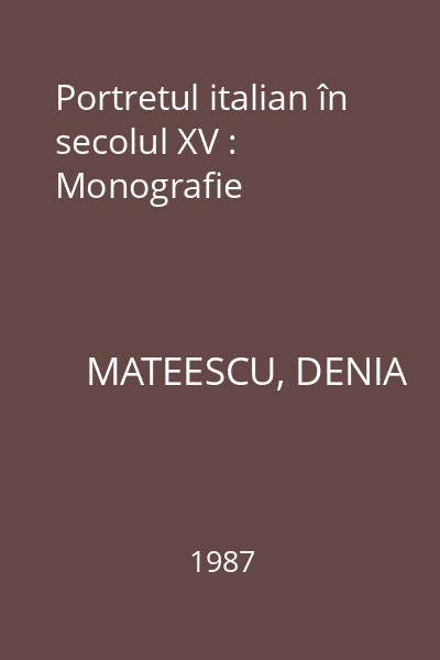 | Titlu | Portretul italian în secolul XV : Monografie |