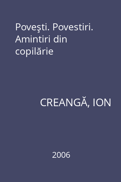 | Titlu | Poveşti. Povestiri. Amintiri din copilărie |