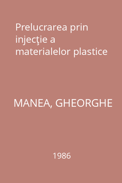 | Titlu | Prelucrarea prin injecţie a materialelor plastice |