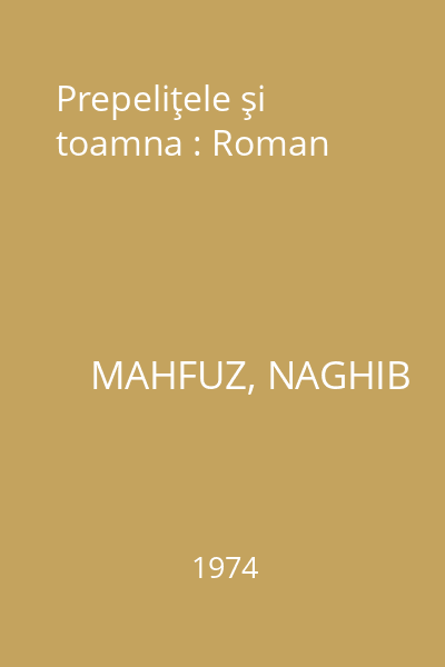 | Autor principal | MAHFUZ, NAGHIB |