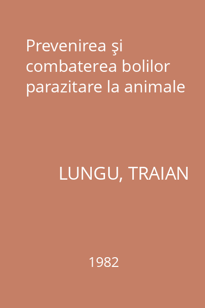 | Titlu | Prevenirea şi combaterea bolilor parazitare la animale |
