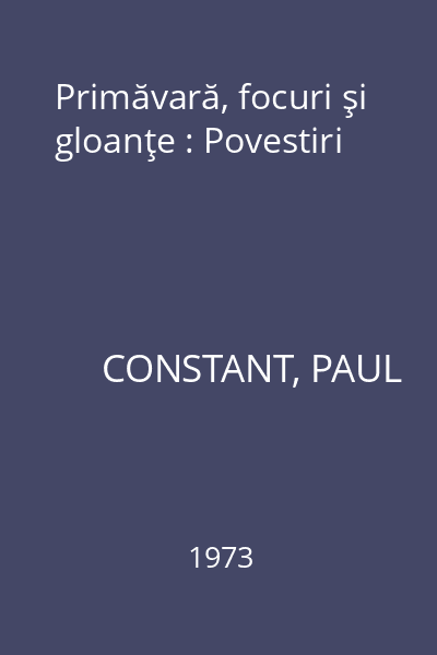 | Titlu | Primăvară, focuri şi gloanţe : Povestiri |