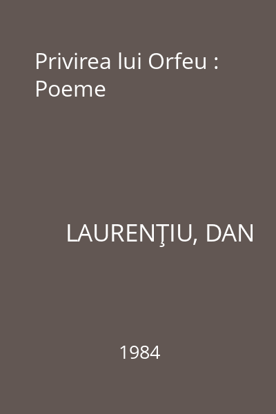 | Titlu | Privirea lui Orfeu : Poeme |