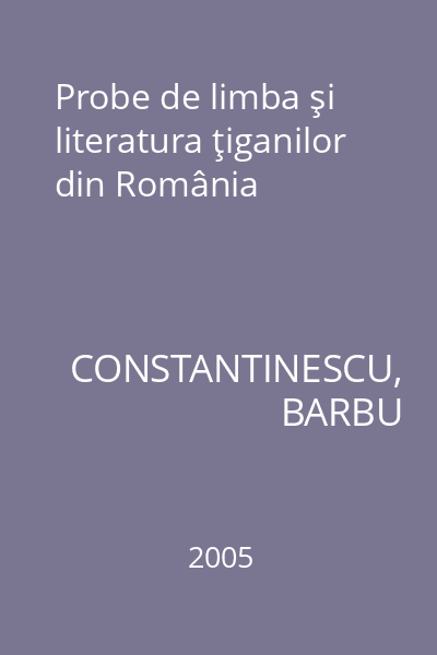 | Titlu | Probe de limba şi literatura ţiganilor din România |