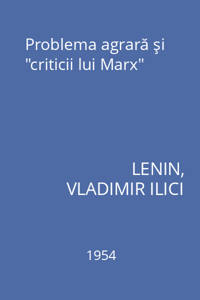 | Titlu | Problema agrară şi "criticii lui Marx" |