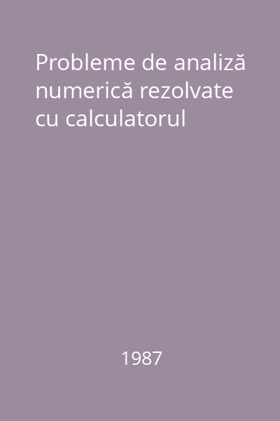 | Titlu | Probleme de analiză numerică rezolvate cu calculatorul |