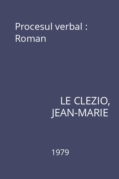 | Titlu | Procesul verbal : Roman |