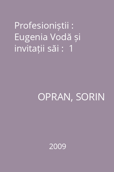 | Titlu | Profesioniștii : Eugenia Vodă și invitații săi : 1 |