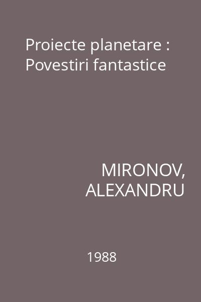 | Titlu | Proiecte planetare : Povestiri fantastice |