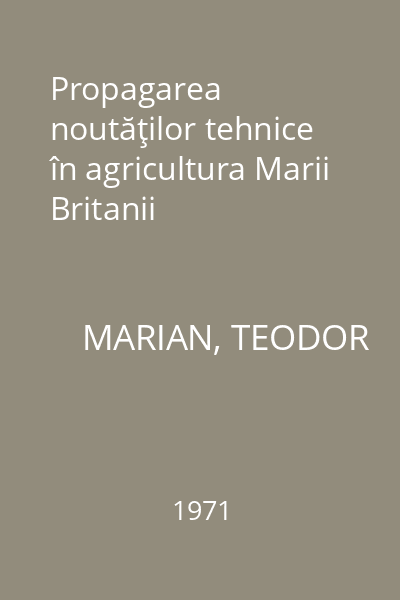 | Titlu | Propagarea noutăţilor tehnice în agricultura Marii Britanii |