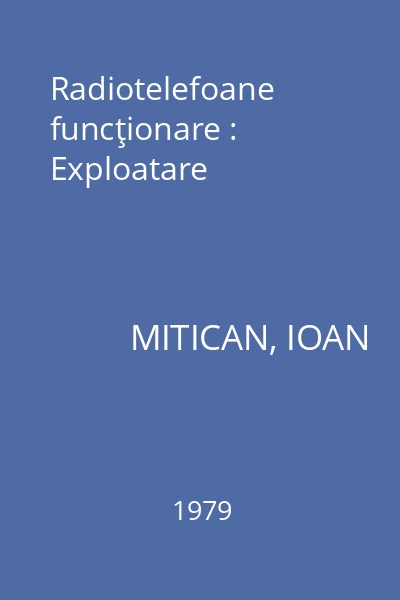 | Titlu | Radiotelefoane funcţionare : Exploatare |