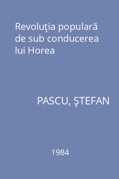 | Titlu | Răscoala de la 1784 a iobagilor din Transilvania |