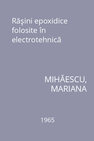 | Titlu | Răşini epoxidice folosite în electrotehnică |
